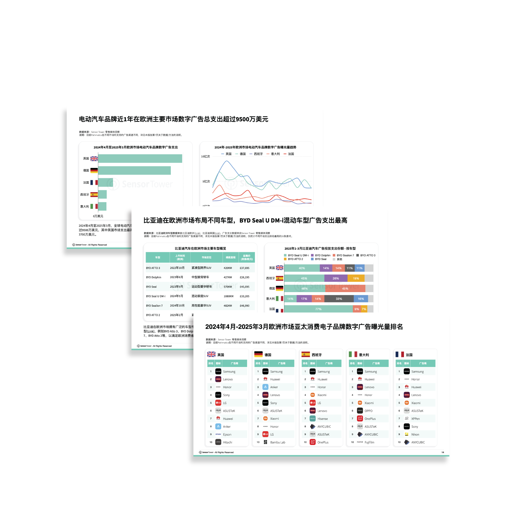 发现英国、德国、西班牙、意大利和法国市场数字广告曝光量最大的亚太电动汽车、消费电子与电器品牌。